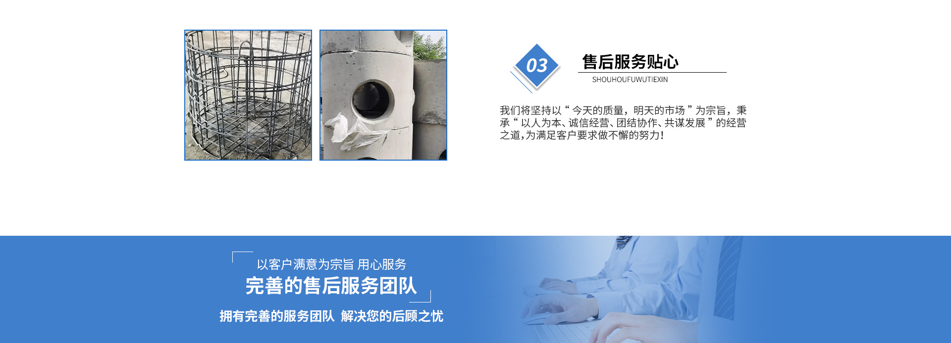 黃山市萬順建筑科技有限公司是集研發(fā),生產(chǎn)制造,市場推廣為一體的綜合性企業(yè)。公司主要經(jīng)營環(huán)保型預(yù)制鋼筋混凝土裝配式組合型檢查井和蓄水裝置等城建配套產(chǎn)品。產(chǎn)品生產(chǎn)過程采用獨(dú)特的生產(chǎn)工藝,機(jī)械化流水作業(yè)。產(chǎn)品大規(guī)模生產(chǎn),生產(chǎn)效率高,耗能少,成本低,產(chǎn)品使用壽命長、免維護(hù)、無滲漏、無污染,符合“綠色環(huán)保,低碳節(jié)能”的發(fā)展要求,是傳統(tǒng)磚砌井池的理想替代產(chǎn)品。